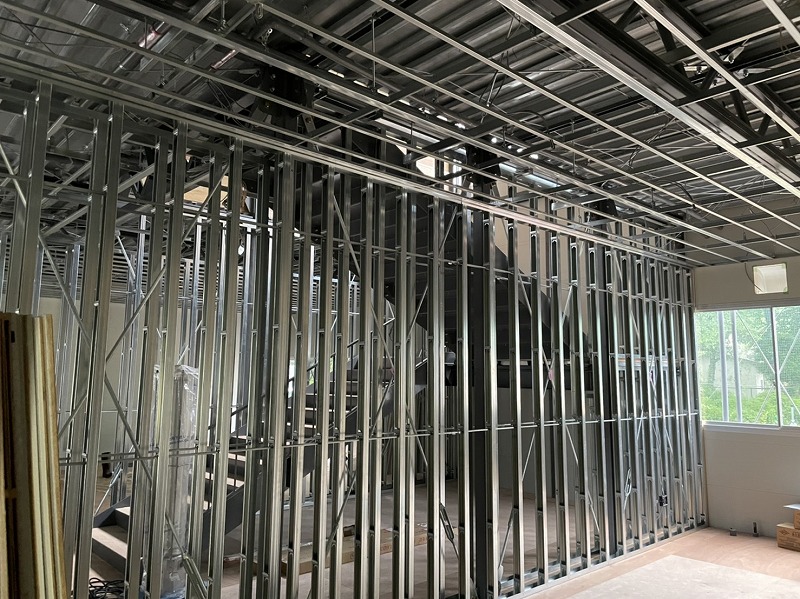 LGSとはLight Gauge Steel(ライト・スティール・ゲージ=軽量鉄骨造の意)の事で、公共施設、高層ビル、マンション、商業施設、店舗など様々な建物でよく使われ、木材と比べ伸縮、曲がりなど無く又、湿気等にも強く耐火性も優れています。